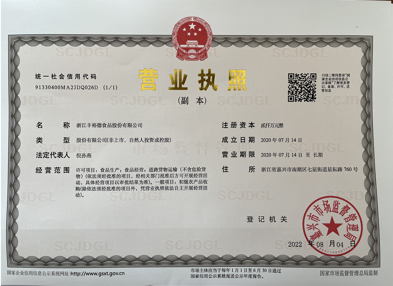 浙江豐裕德食品股份有限公司