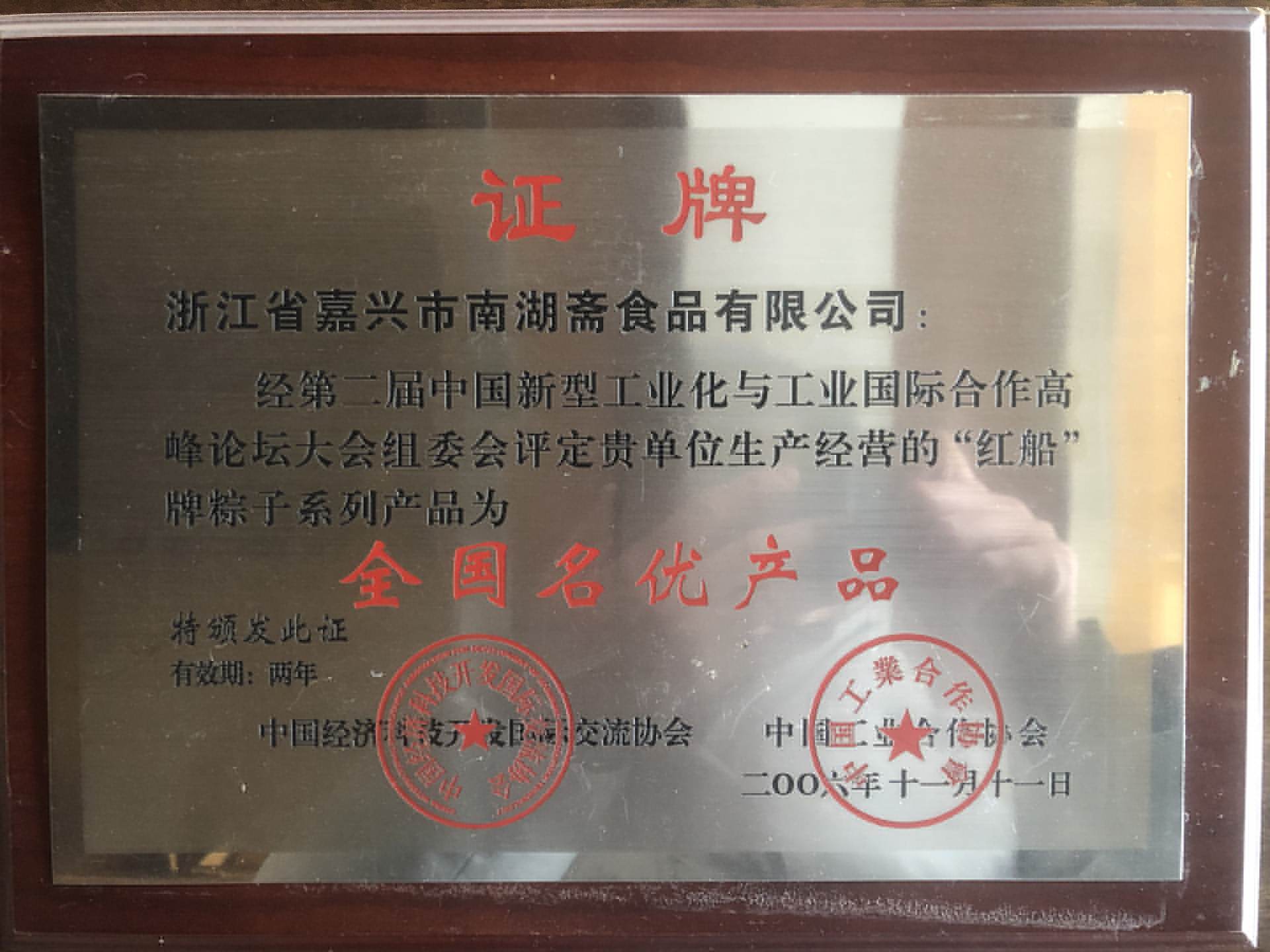2005年粽子產(chǎn)量突破1000萬只,南湖齋旗下“紅船”品牌被評為嘉興市著名商標。